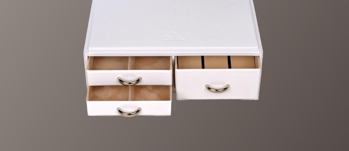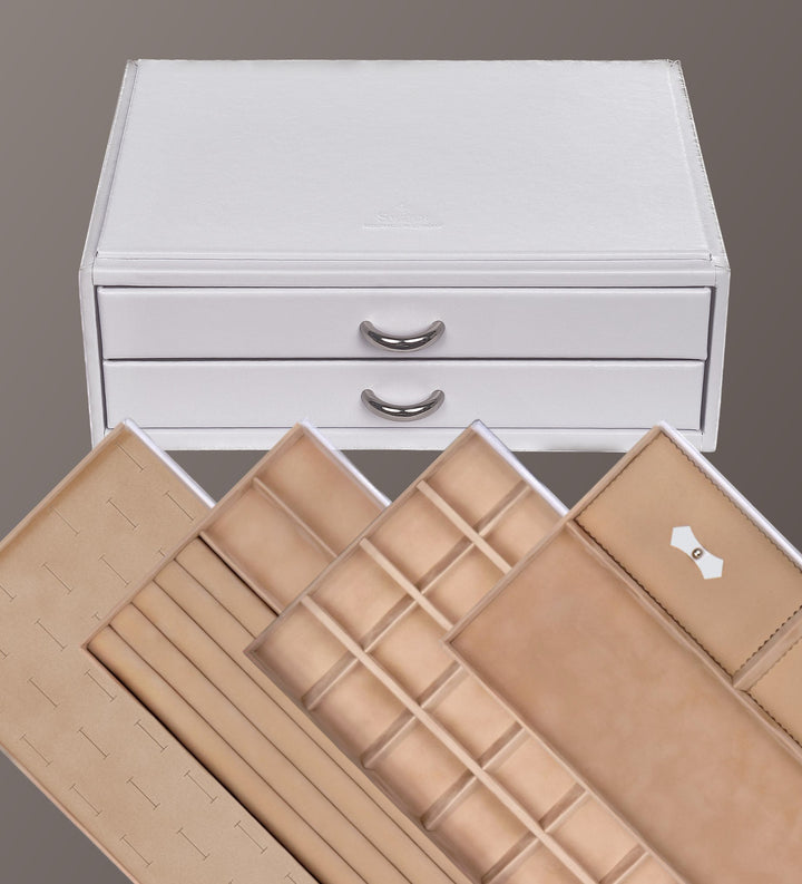These modules form the end of your jewelry tower and can be stacked on top of all other modules. They offer you an additional option for customizing your jewelry case. Create the perfect finish for your individual jewelry tower.