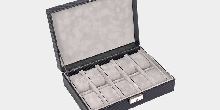 Horlogekast voor 10 horloges carvon / zwart (leer)