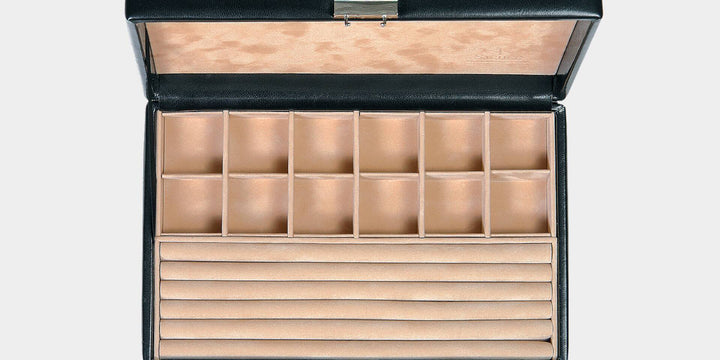 SACHER - Als enige fabrikant van sieradendozen, horlogeboxen en etuis in Duitsland staan wij voor uitstekende kwaliteit, vakmanschap 'Made in Germany' en hoge klanttevredenheid. Onze passie ligt in het creëren van exclusieve opbergoplossingen voor sieraden die waardevolle sieraden optimaal beschermen, organiseren en presenteren.